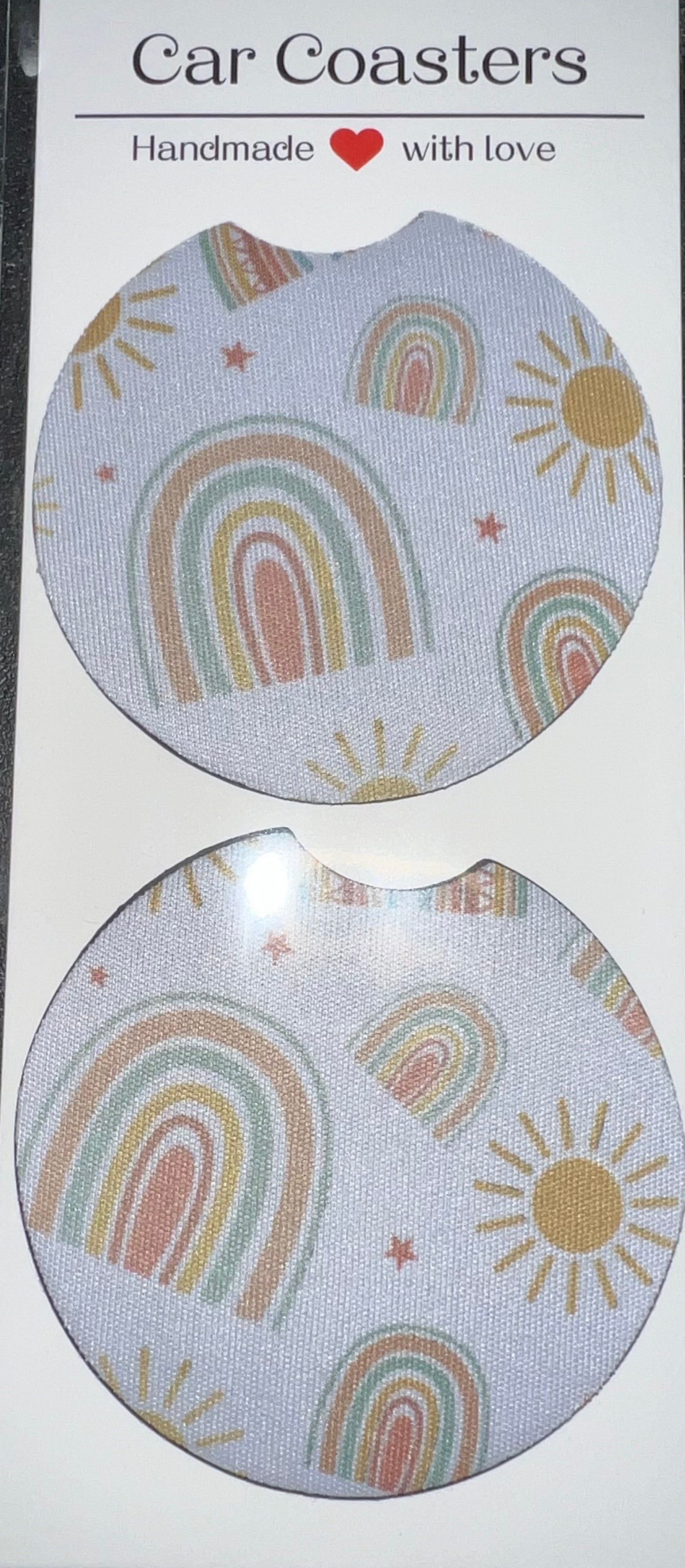 These cute designs can style your cup holders in your car. Choose from the various designs. Each set comes with two coasters.